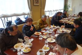 昼食は各テーブルごとに相談員を中心に自己紹介を行い、女性が各テ ーブルを回る形式で交流会が行なわれました。