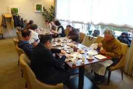 食事後はフリータイムとして席を離れて参加者との交流をはか り、会話が弾み、交流を楽しんでいる様子が伺えました。
