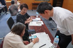 令和7年度 スマートフォン操作研修会 (2025年10月3日掲載) 7月25日(金)、セキショウ・ウェルビーイング福祉会館で、スマートフォン操作研修会を開催しました。 今回は、「スマホの基礎とキャッシュレス体験」講座として、15名の会員が参加。初心者でも分かりやすく、やさしく学べる研修会として、スマートフォンの基本操作、地図や写真アプリの使い方のほか、QRコードを使ったキャッシュレス方法などを学びました。