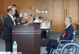 主催者挨拶の後、退任した市町村団体会長・染谷氏(前境町身体障害者福祉協議会会長)に、