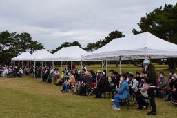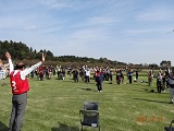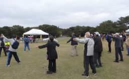 秋晴れに恵まれ、偕楽園好文亭を見上げる景観の中で、機能回復訓練を行いました。当協議会の最大のイベントの一つで、大いに友愛の輪を広げています。